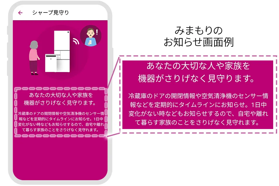 たとえば働くママの場合、帰宅した子供にメッセージを伝えたい時は、「COCORO HOME」アプリを通じて、自宅の冷蔵庫に伝言を送信すれば、ドアを開いたタイミングで伝言が再生されます。開閉状況がわかるので、子供の帰宅確認もできて安心です。