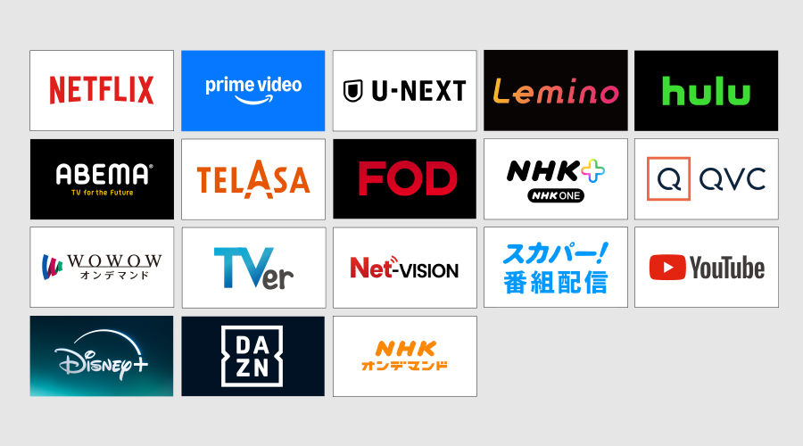 インターネットにつなぐだけで、これらのサービスでしか見られないオリジナルコンテンツやテレビ番組の見逃し配信、映画やスポーツ、アニメなど様々なコンテンツに出会えます。