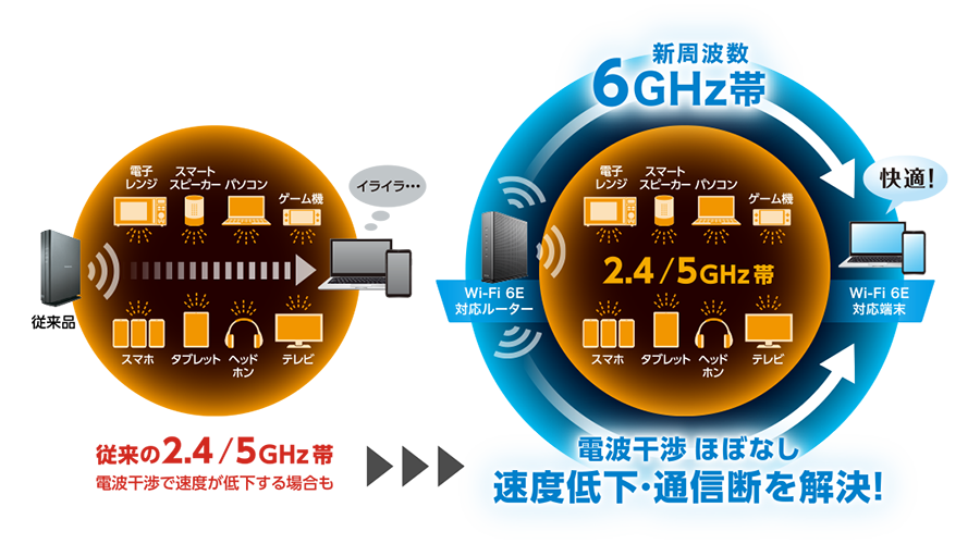 混雑が少なく快適な通信を実現する、次世代無線通信規格「Wi-Fi 6E」対応
