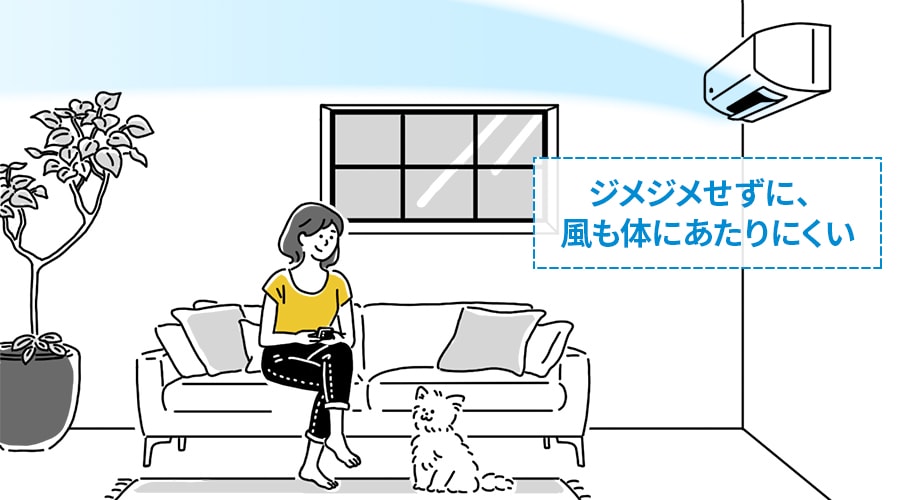 コアンダロング気流で、風を体に直接あてないやさしい気流を実現