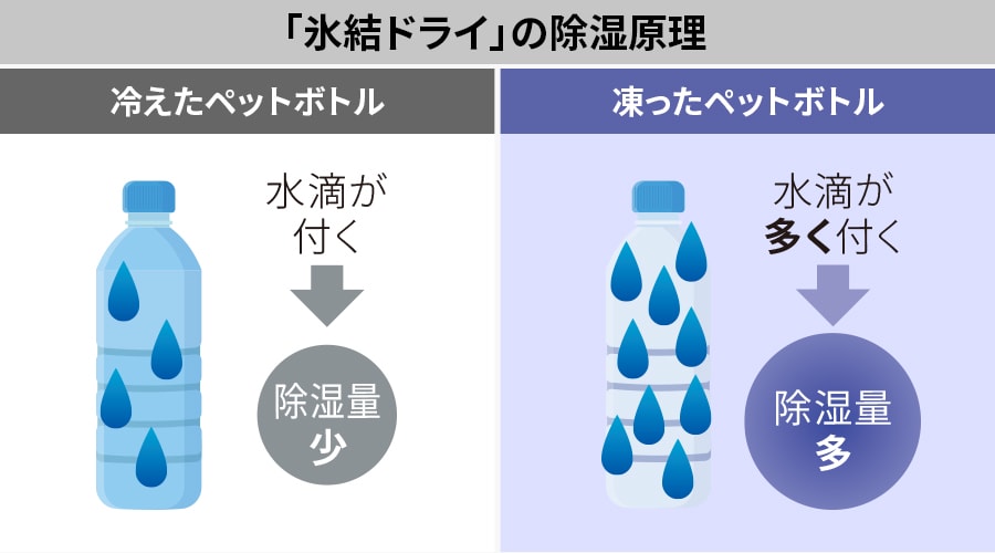 1枚目:氷結ドライイメージ、2枚目:氷結ドライの除湿原理