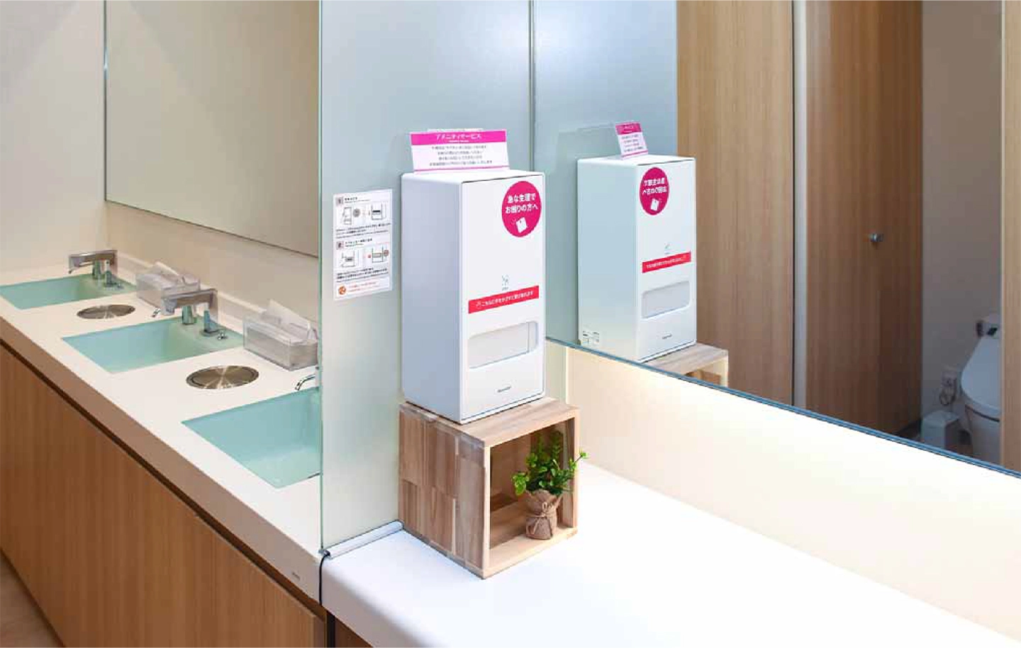 2025年9月に12台、2025年12月に17台の計29台を導入。本社と店舗16店の女性用トイレで生理用ナプキンの配布に活用。顧客サービス向上や従業員の福利厚生に役立てている。
