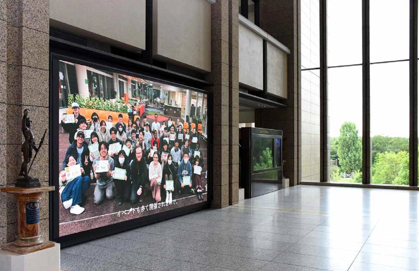 2024年7月、中央教育棟エントランスホールに導入。学生や関係者に大学の取り組みを紹介。
