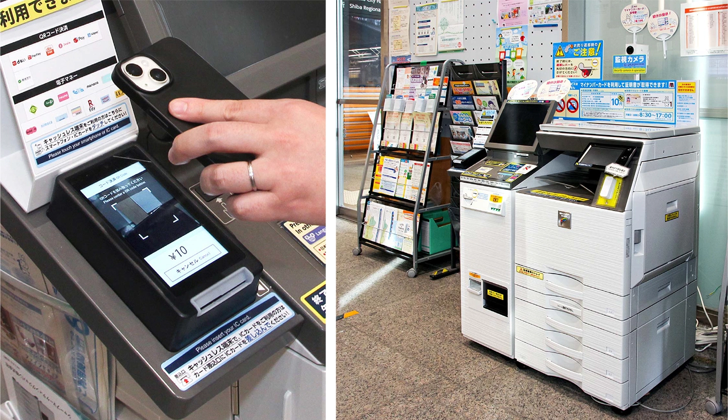 証明書のコンビニ交付の利用率をさらに上げるため、区の総合支所・分室にコンビニ同様のセルフ発行用マルチコピー機を設置しようと考えました。一方で、普及が進むキャッシュレス決済の導入も必須としていたため、それに対応していることが機器選びの第一条件となっていました。
