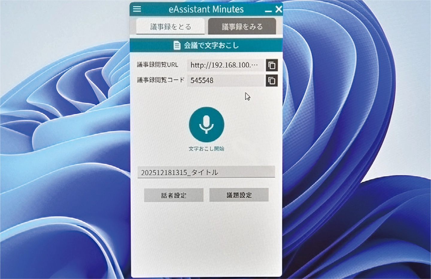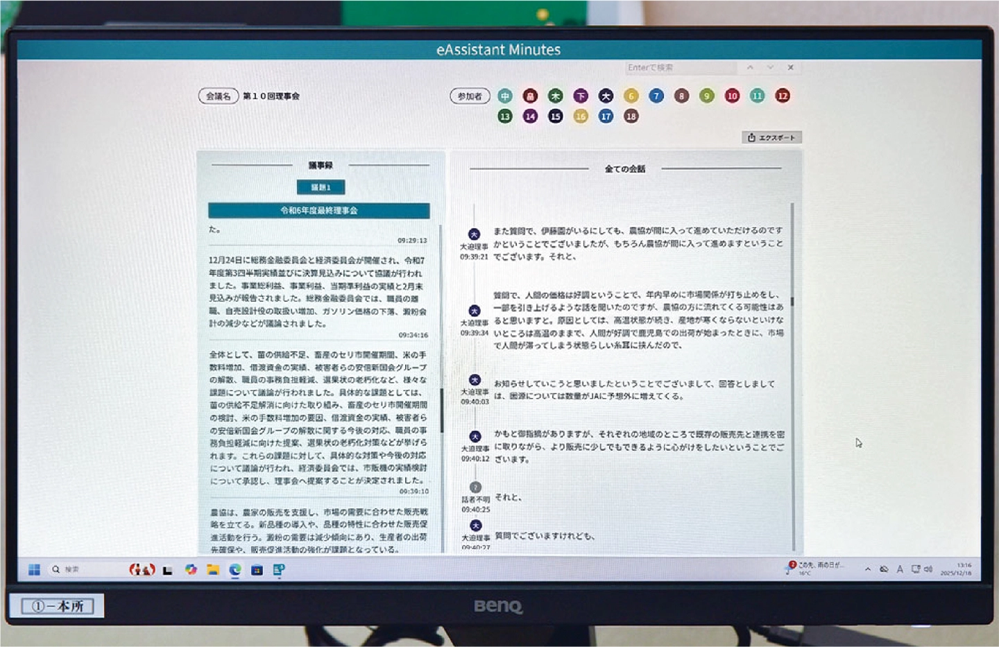 2025年10月運用開始。本所3階大会議室に議事録作成端末を設置し、理事会や委員会で活用されている。
