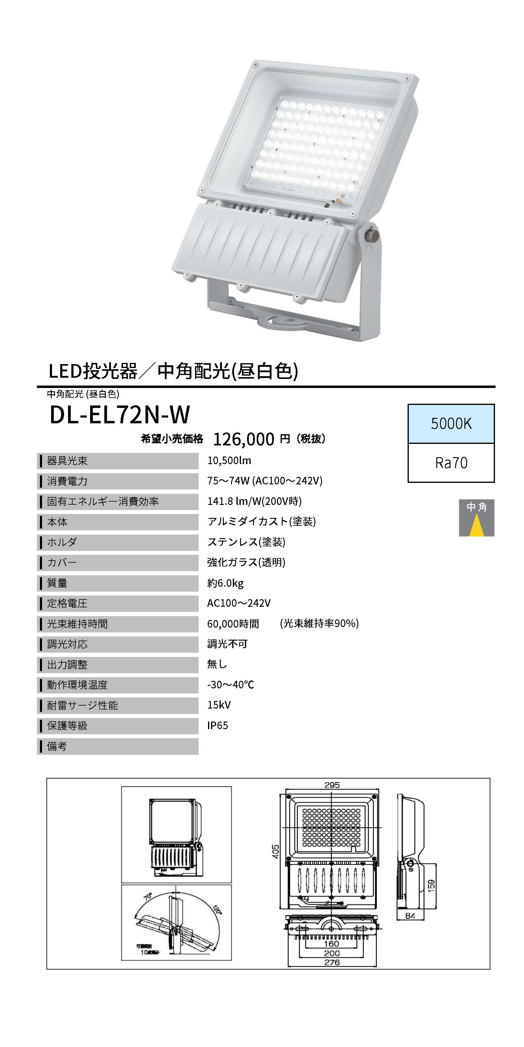 水銀灯400W相当 <DL-EL72N-W>