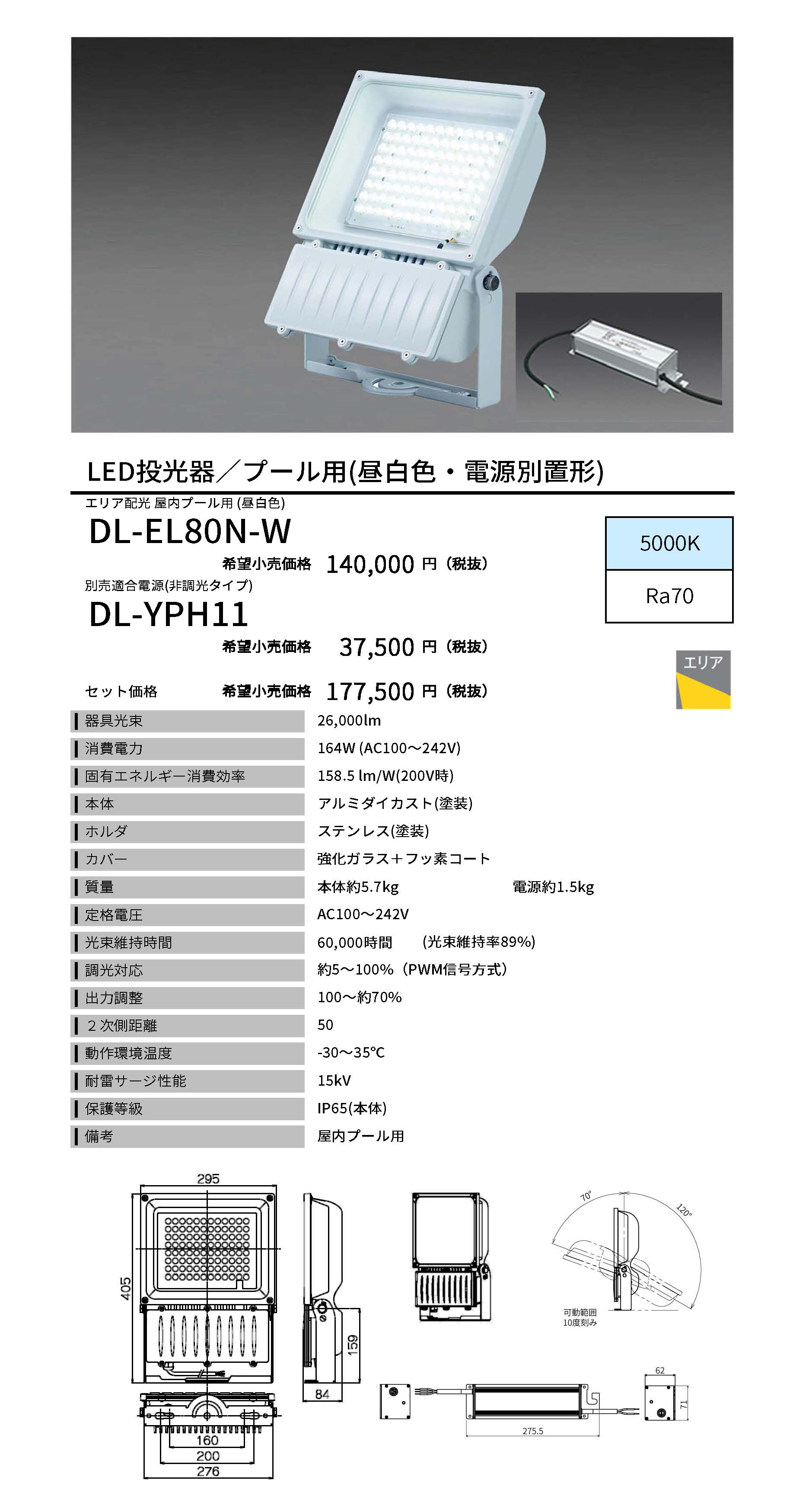 屋内プール用 <DL-EL80N-W>(電源別置形)