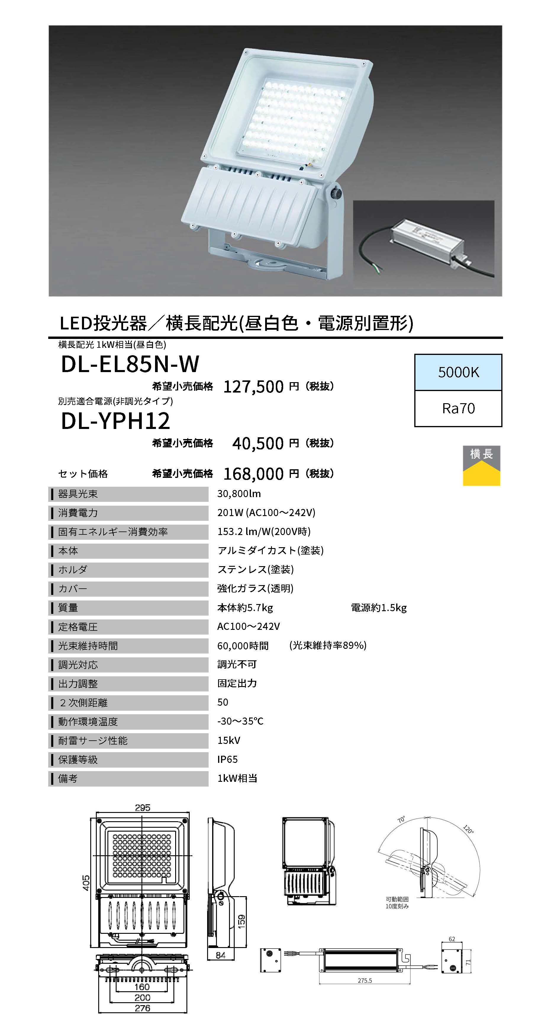 水銀灯1kW相当 <DL-EL85N-W>(電源別置形)