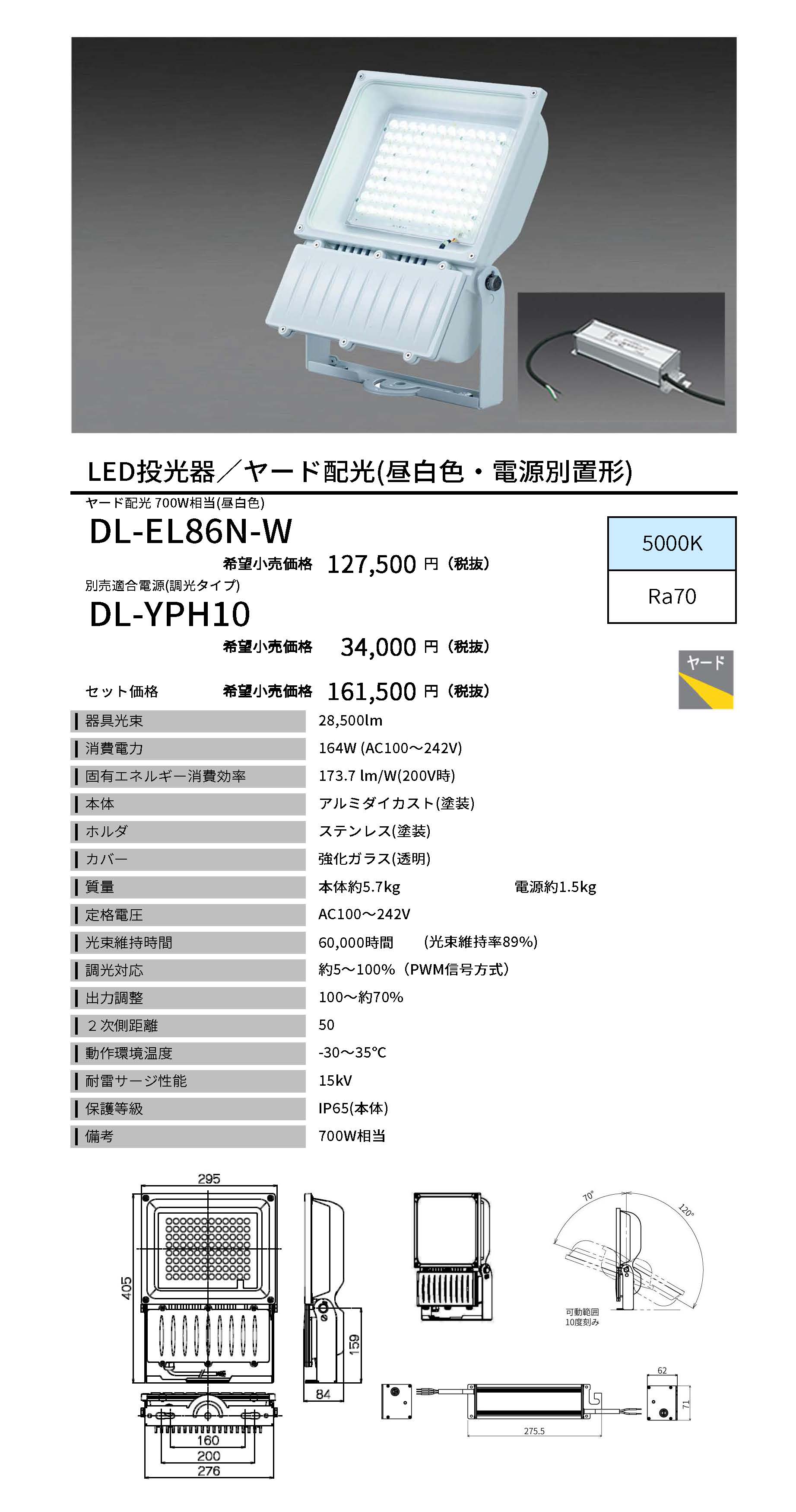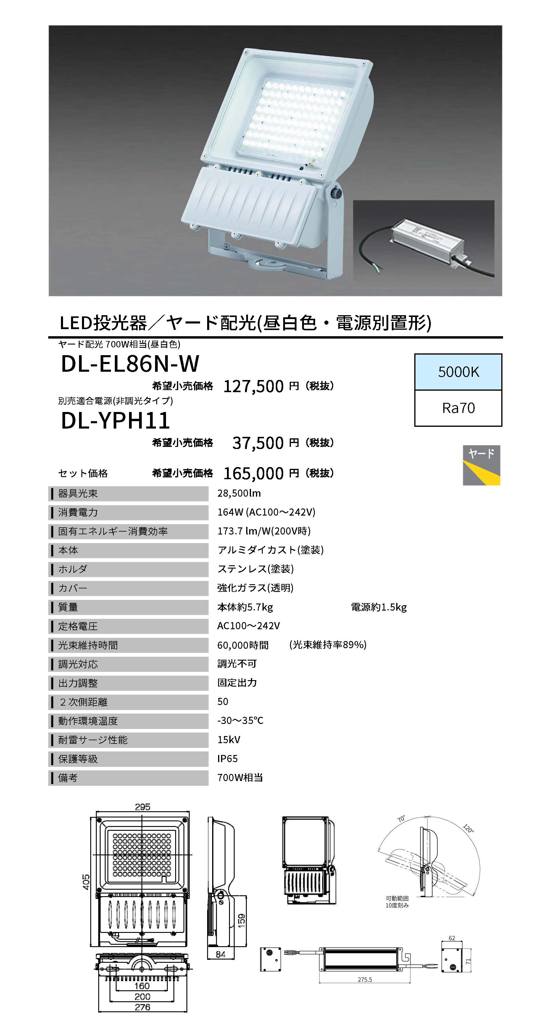水銀灯700W相当 <DL-EL86N-W>(電源別置形)