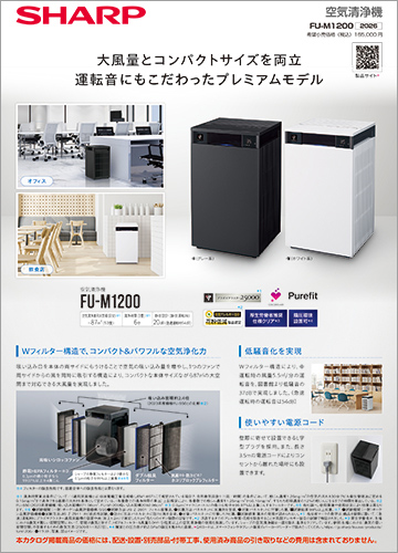 製品カタログ プラズマクラスター機器総合カタログ2026年版 ダウンロード 空気清浄機 FU-M1200カタログ2026年版 ダウンロード 加湿空気清浄機 KC-M511カタログ2023年版 ダウンロード PDFファイルをご覧になるには「Adobe Reader」プラグイン(無料)をインストールしてください。
