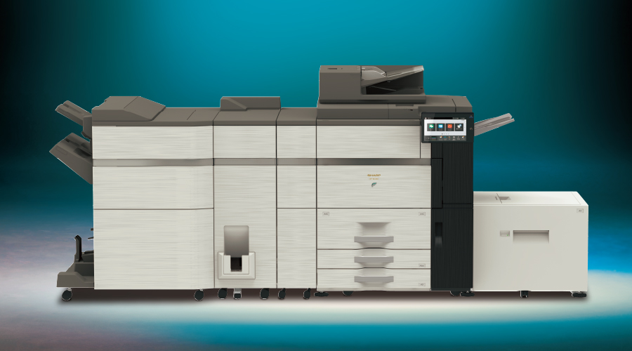 - 写真は、サドルフィニッシャー(BP-FN21)、紙折りユニット(MX-FD10)、カール補正ユニット(MX-RB27)、中継ユニット(MX-RB12 N)、大容量給紙トレイ(A3)(MX-LCX3 N)装着時です。