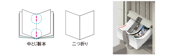 最大20枚までの中とじ製本など高度な仕上げ処理を自動化。手間のかかるパンフレットや提案書、リーフレットなどの冊子を手軽に作成することができます。