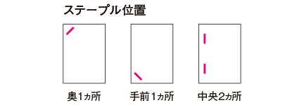 ステープル留めは、3種類のとじ方から選択可能。提案書や資料など書類に合わせて選べます。