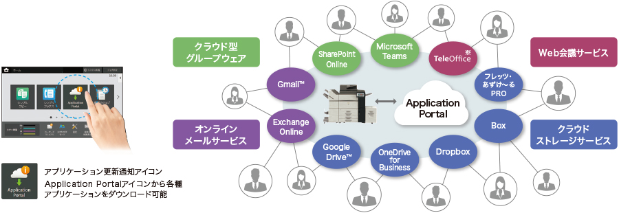 また、アプリケーションもクラウド上から簡単にダウンロード可能。更新もひと目で分かり、常に最新のサービスが利用できます。