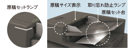 原稿送りの際に、原稿が重なって送られた場合、センサーで検知して原稿読み込みを停止します。