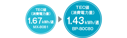 数多くの節電技術を搭載し、従来機からTEC値を低減しています。