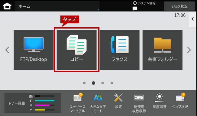 4. コピー基本画面が表示されますので、操作ステップ3から操作を続けてください。
