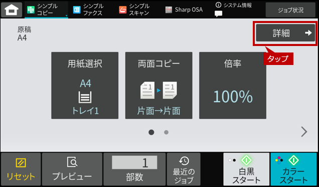 2. シンプルコピー基本画面の[詳細]をタップします。