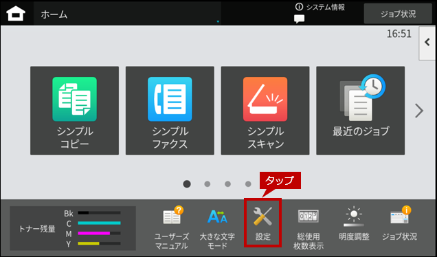 1. ホーム画面の[設定]をタップします。