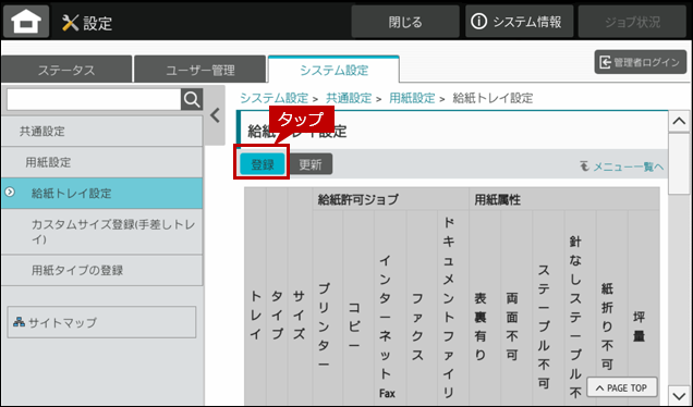 9. 給紙トレイ設定画面に戻りますので、[登録]をタップします。