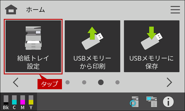 2. ホーム画面の[給紙トレイ設定]をタップします。
