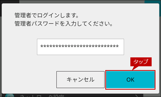 4. ログイン画面が表示されるときは、管理者パスワードを入力して[OK]をタップします。