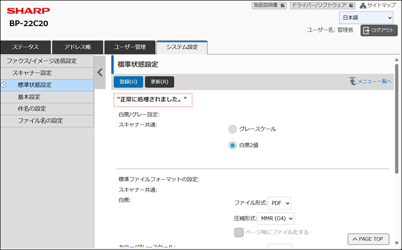 これで、スキャン解像度の規定値(デフォルト値)が変更されました。次にスキャン解像度の規定値が正しく変更されていることを確認します。