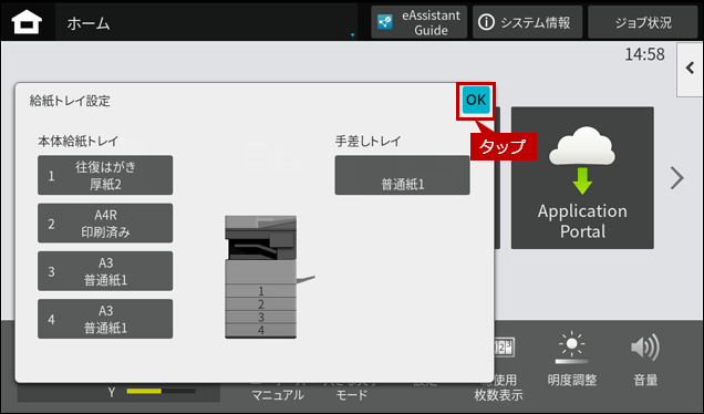8.「給紙トレイ設定]画面にもどりますので、[OK]をタップします。