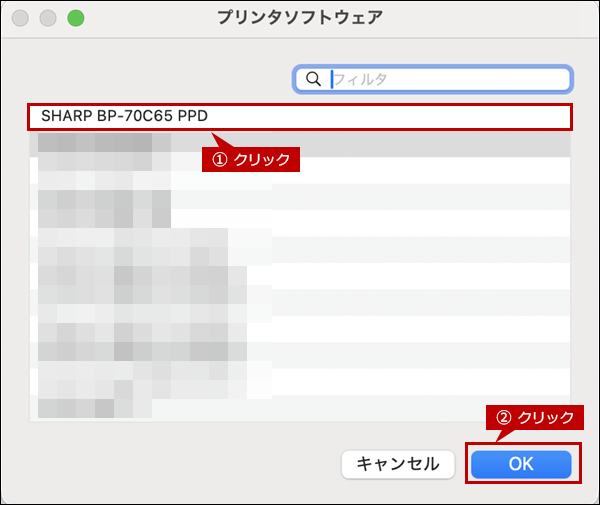 AirPrintをご利用の場合は ドライバ「SHARP BP-70C65」をご利用ください
