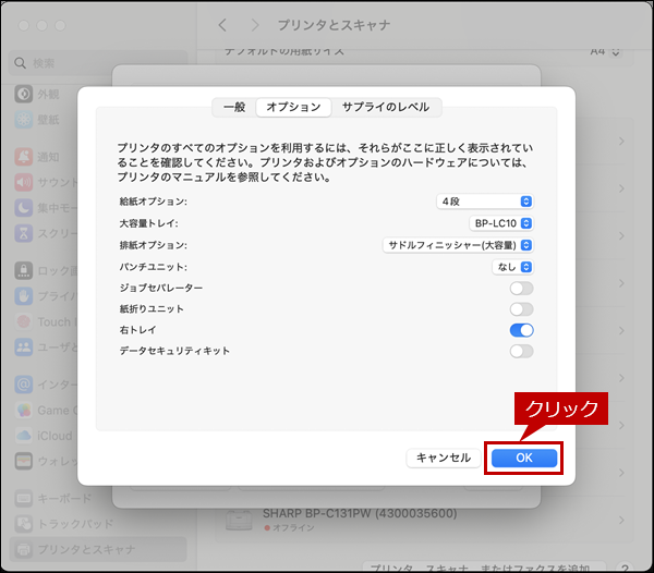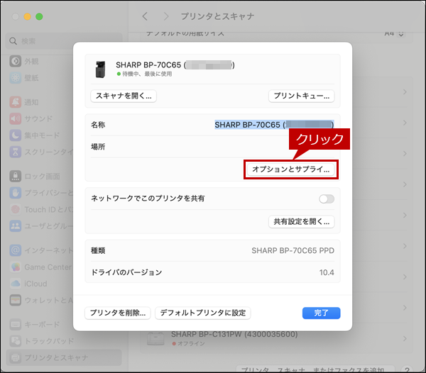 本ページの画像および操作は、macOS 15です。Mac OSのバージョンやドライバーの種類によっては、一部異なる点があります。