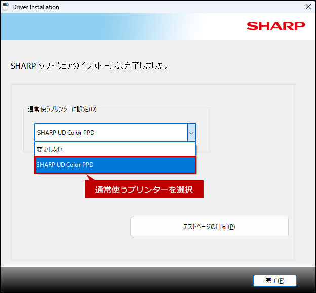 - ● 他の複合機や他のドライバーが「通常使うプリンター」として既に設定されていて変更したくない場合は[変更しない]を選んでください。