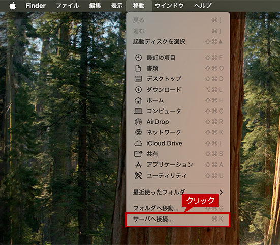 2. メニューリストが表示されますので、[サーバーへ接続...]をクリックします。