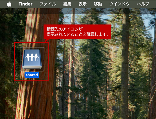 1. 複合機の共有フォルダーに接続後、デスクトップに接続先のアイコンが表示されていることを確認します。