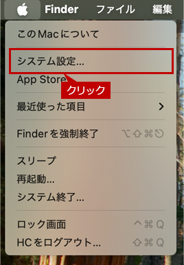 1.メニューバーの[Finder]をクリックして、[環境設定]をクリックします。