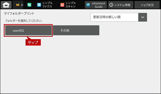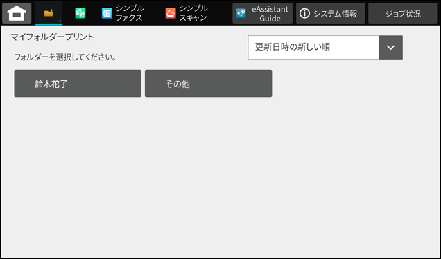 8. 「マイフォルダープリント」画面に戻りますので、フォルダー名が変更されていることを確認します。