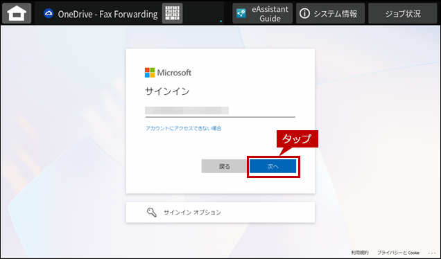 13. OneDriveのサインインの画面が表示されますのでアカウントを入力して[次へ]をタップします。