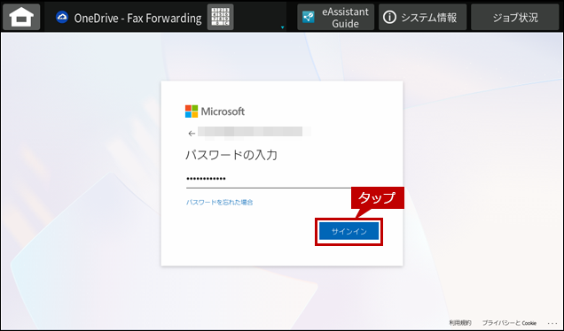 ※ [OneDrive - Fax Forwarding]ボタンがトップページにない場合は、画面を右にスクロールします。