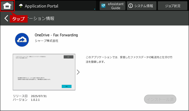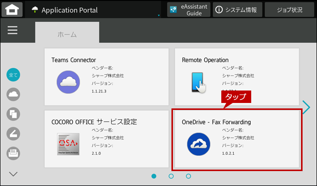 ※工場出荷値では「OneDrive - Fax Forwarding」の機能ボタンは非表示になっています。