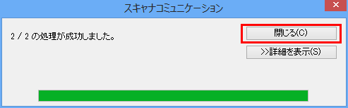 E「スキャナコミュニケーション」画面で処理の進行状態が表示されますので、処理が完了したことを確認し、[閉じる(C)]を押してください。