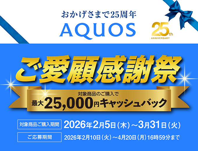 AQUOS誕生25周年 ご愛顧感謝祭キャッシュバックキャンペーン