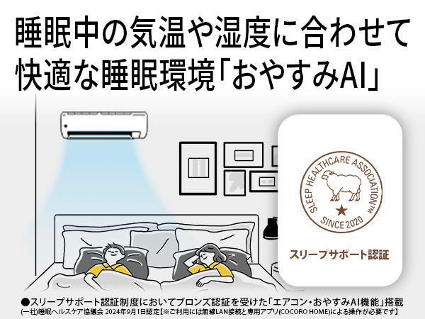 スリーブサポート認証制度においてブロンズ認証を受けた「エアコン・おやすみAI機能」搭載。