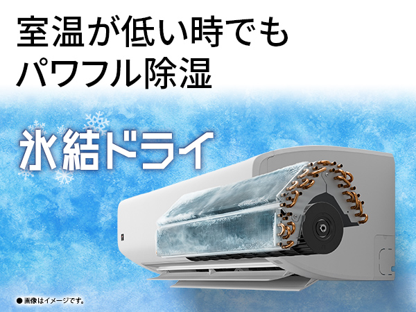 熱交換器の温度を氷点下まで下げることで、従来除湿しにくかった室温が低い時でもパワフルに除湿。また、ファンの回転数を極限まで落とし、肌寒さも抑えます。
