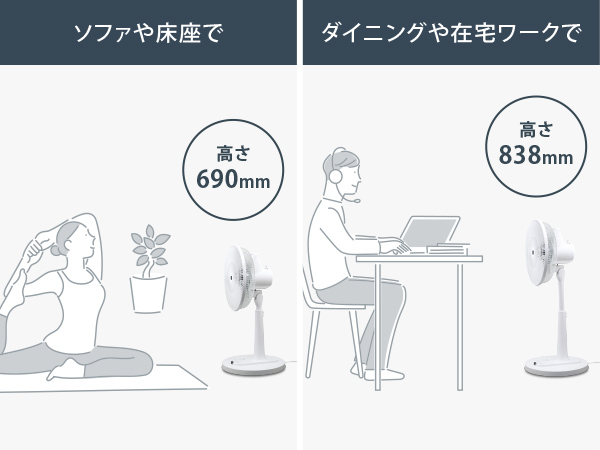 使用シーンに合わせた高さ調整が可能
