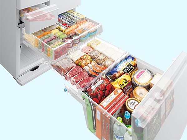 たっぷり⼊るから、まとめ買いも快適。充実の鮮度⻑持ち機能で、⾁・⿂・野菜も⼿作り総菜も、フレッシュな味をしっかりキープします。