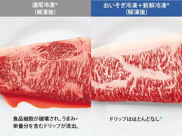 ※ 冷凍保存1週間後、室温解凍した場合のシャープ試験比較。食材の種類・状態・解凍方法などにより効果は異なります。