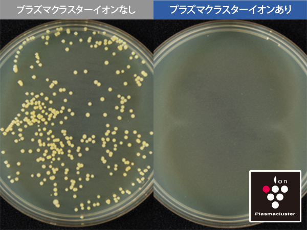 ※2 付着菌除菌効果(100Lのボックス内での実験結果。実使用空間での実証結果ではありません。)【試験依頼先】(一財)石川県予防医学協会【試験成績書】第H1600196K号【試験法】100Lのボックス内に菌を塗布した寒天培地を配置し、プラズマクラスターイオン放出6日後の生菌数を測定(プラズマクラスターイオン濃度:50,000個/cm³)【対象場所】冷蔵室内【試験結果】6日間で除去率99%以上。