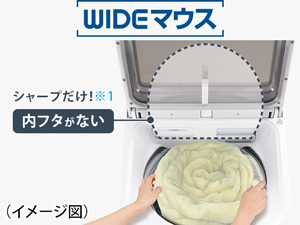 内フタがないので、毛布やカーテンなど大きめの洗濯物や大量の衣類もスムーズに出し入れできます※2。