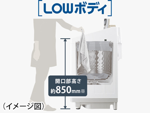 開口部の高さが約850mm※と低いので、洗濯槽の底にある衣類も楽な体勢で取り出せます。
