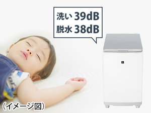 高速回転時でも運転音を抑えるインバーターを搭載。夜間や早朝でも気がねなくお洗濯できます。