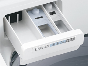 洗剤も柔軟剤も手前からラクに注げて使いやすい設計です。